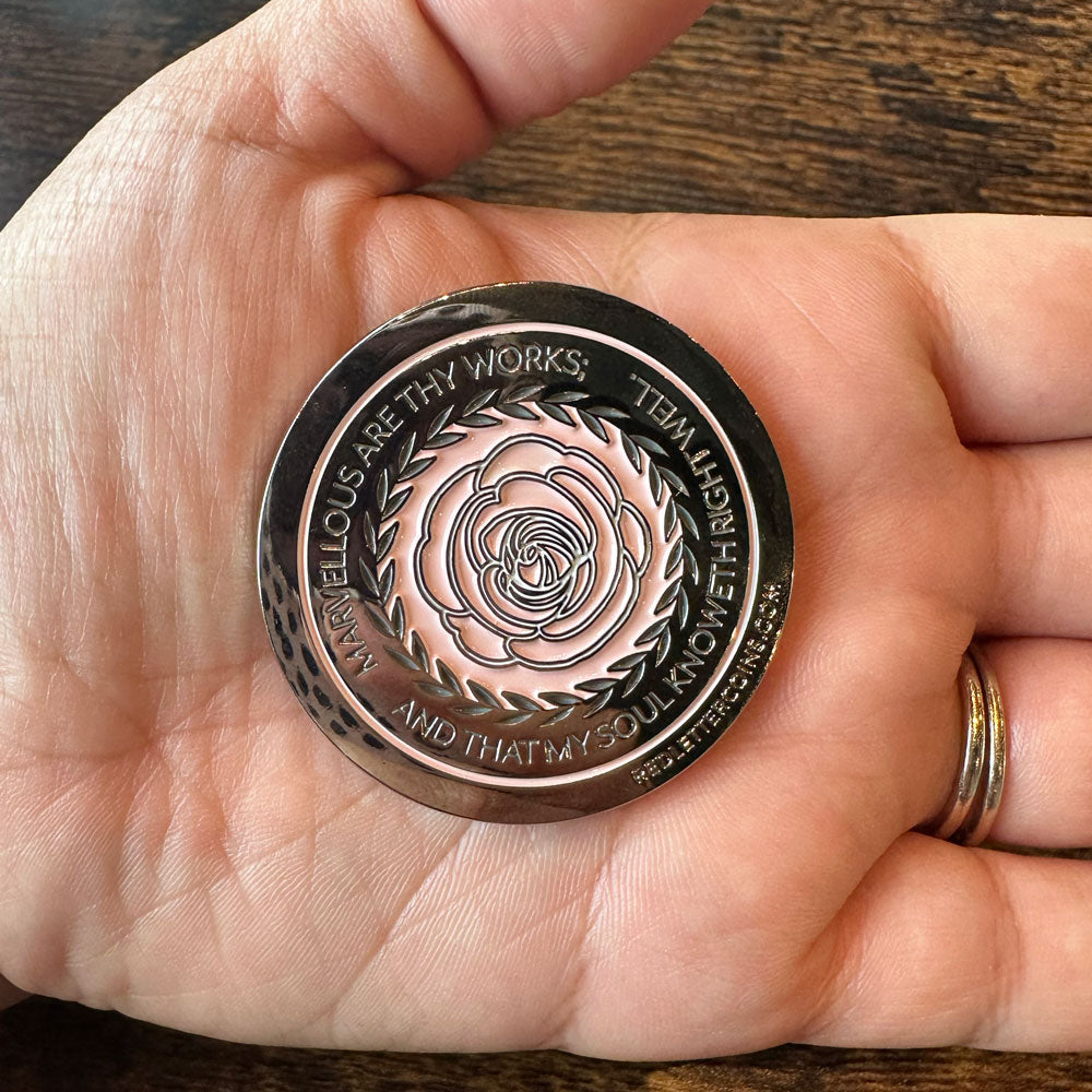 With our Fearfully & Wonderfully made coin, we aim to honor Lillian's legacy and raise awareness about Trisomy 18. Each coin is meticulously crafted with the utmost care and attention to detail. It features a stunning design that symbolizes Lillian's strength and the love she continues to inspire.