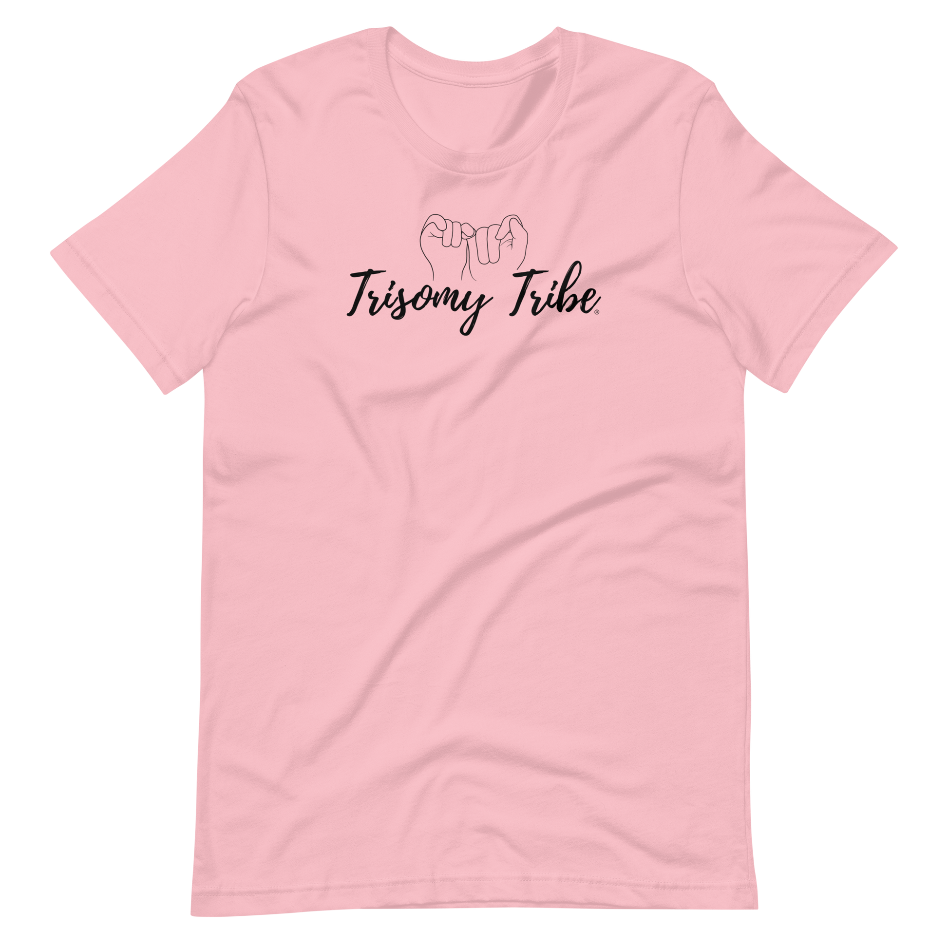 This is one of my all time favorite tees. A pinky promise is the most unbreakable kind of promise, paired with our trisomy tribe® wording to create the strongest bond. The hands on this tee are Allie and Lillian’s (and are printed to scale). They’re the sweetest little friends in heaven and Hannah (Allie’s mama) and I are so proud of them for being world changers.
